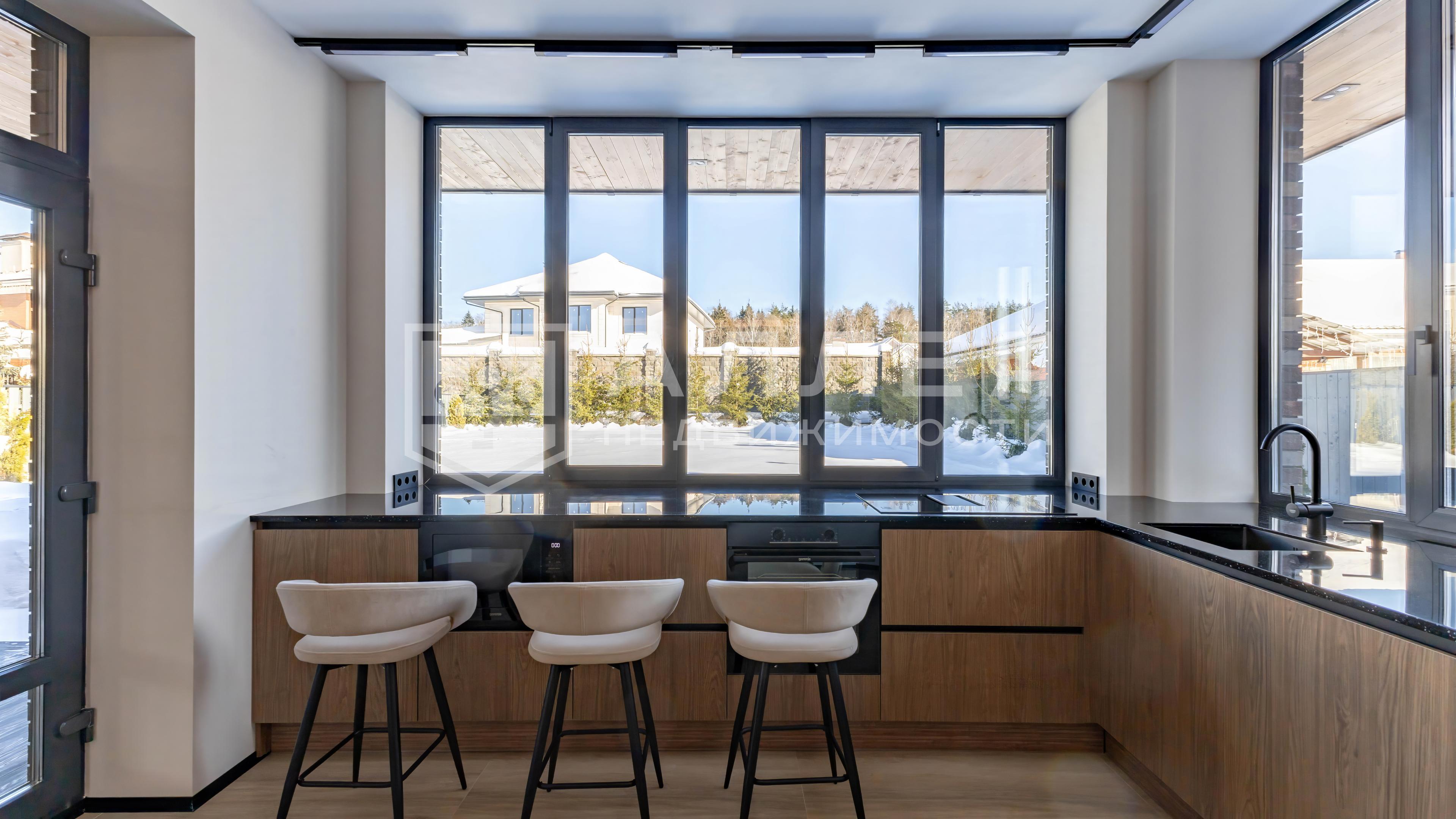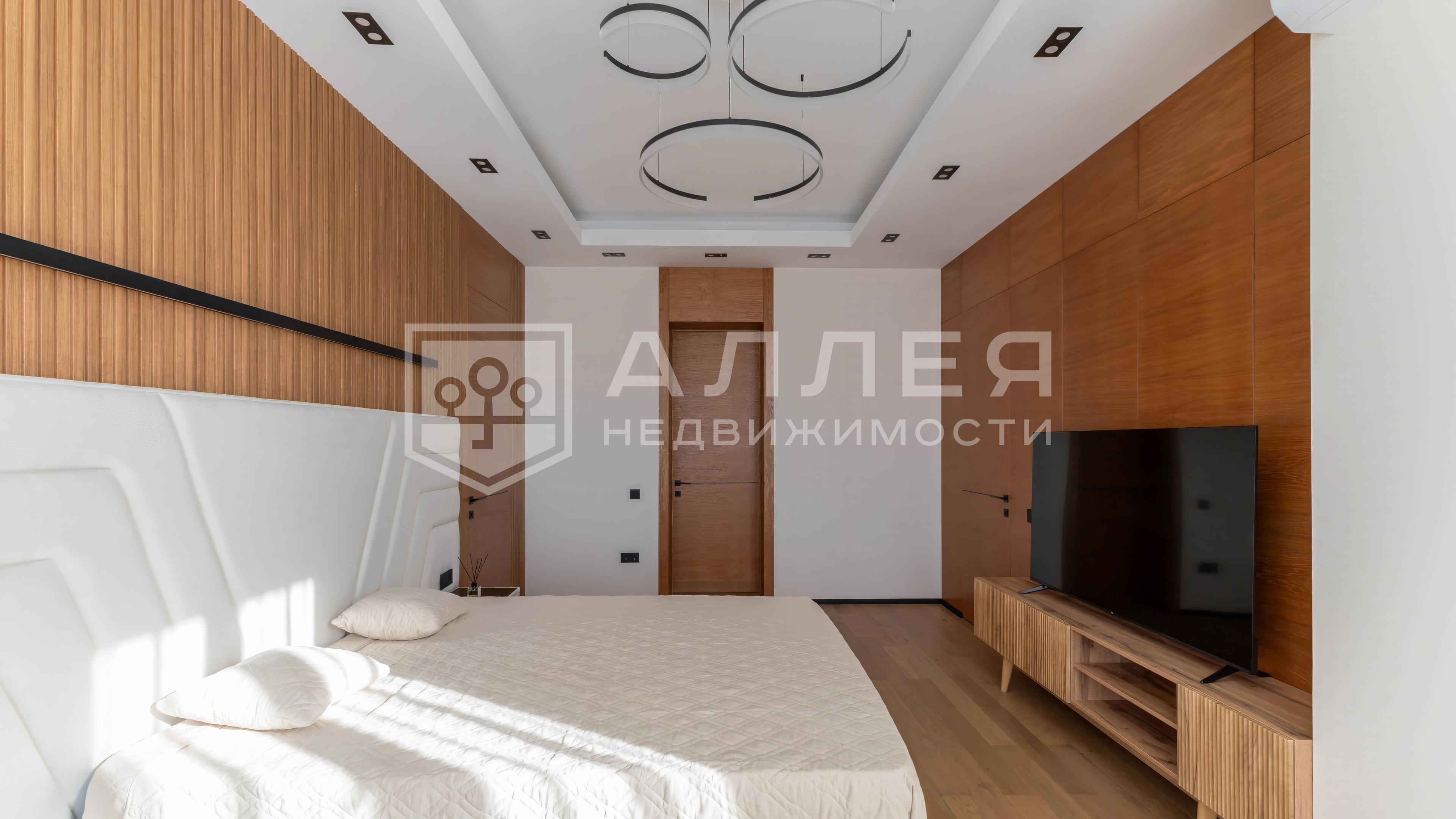 Современный стиль, эксплуатируемая кровля, виды на озеро. Дом новый, в нем не жили. Полностью меблирован. Для родителей или гостей две спальни на первом этаже. В мастер спальне отдельный санузел и гардеробная. Есть большая веранда с видом на участок. Благодаря панорамному остеклению в пол в доме много света. Установлены теплые полы и кондиционеры, высокие двери скрытого монтажа, на полу дубовая паркетная доска, на стенах декоративная штукатурка. Есть большой теплый гараж. Перекрытия монолитные, облицован клинкерным кирпичом.