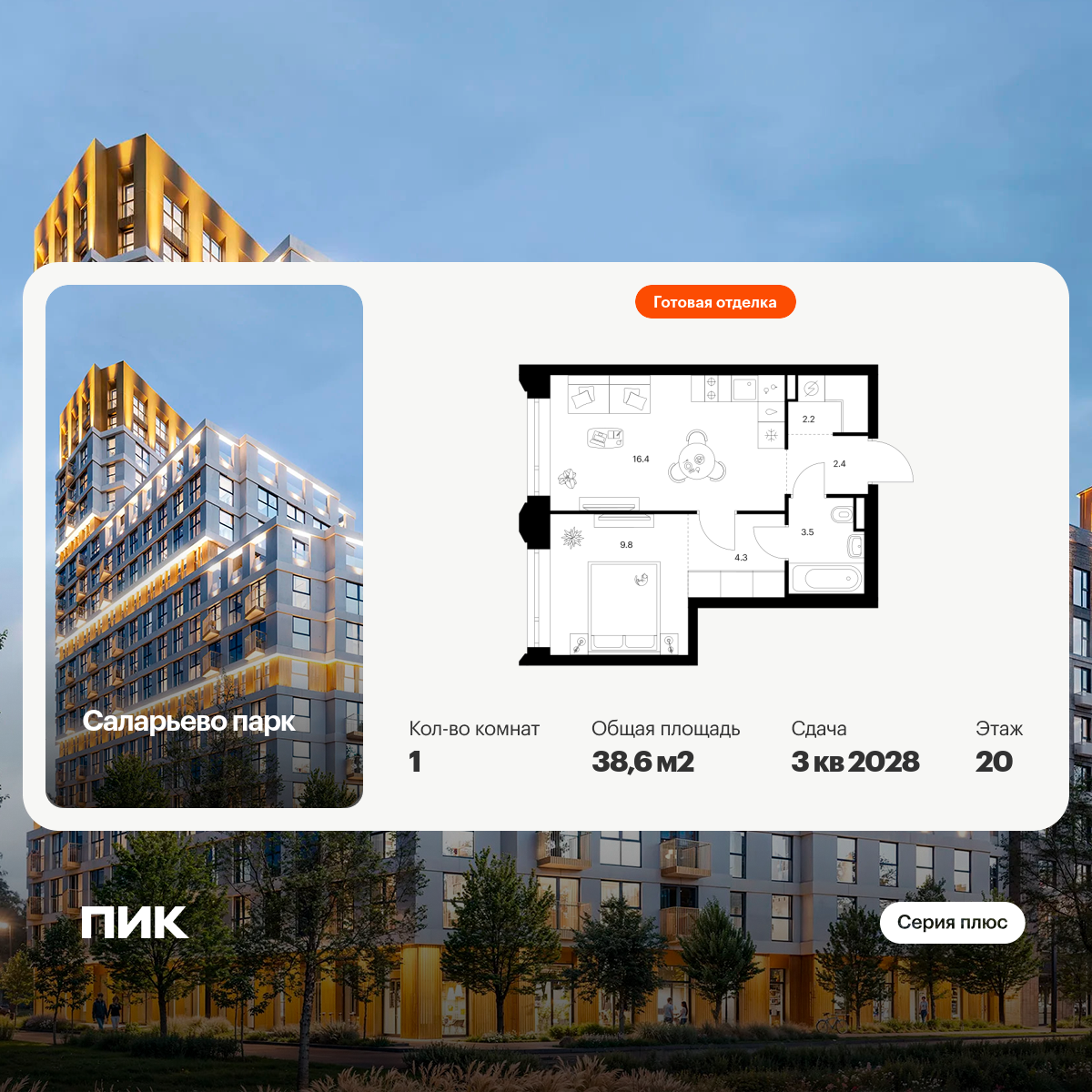 Продаётся квартира-студия площадью 28.60 кв.м на 18 этаже 24 этажного дома (Корпус 82.8, секция 8) проекта ПИК Саларьево парк. Светлый просторный подъезд на уровне земли, функциональная планировка, большие окна, с отделкой.