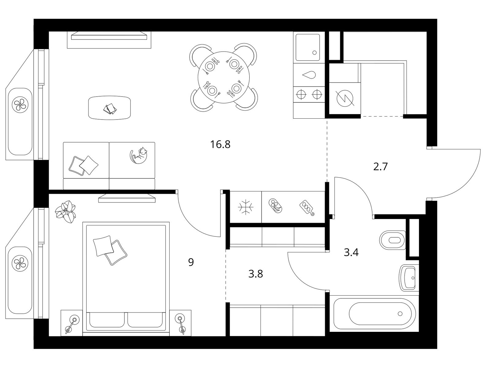 В проекте «Митинский лес» широкий выбор планировок: от компактных и продуманных студий до просторных четырёхкомнатных квартир для большой семьи. Есть варианты с кухней-гостиной, гардеробной, постирочной и двумя санузлами. Для тех, кому важно дополнительное пространство, есть планировки с балконом или собственной лоджией.