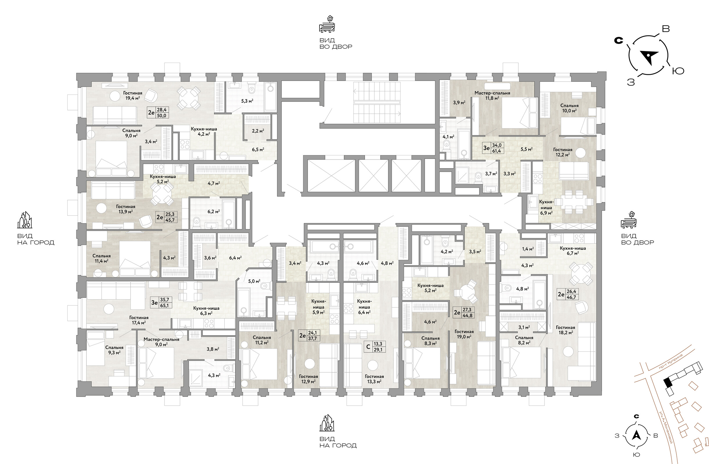 Особое внимание уделяется зоне первых этажей, где будет насыщенная городская среда: пешеходные галереи, коммерческие помещения и другие полезные сервисы для жителей. А для владельцев автомобилей и мотоциклов появятся подземные паркинги.