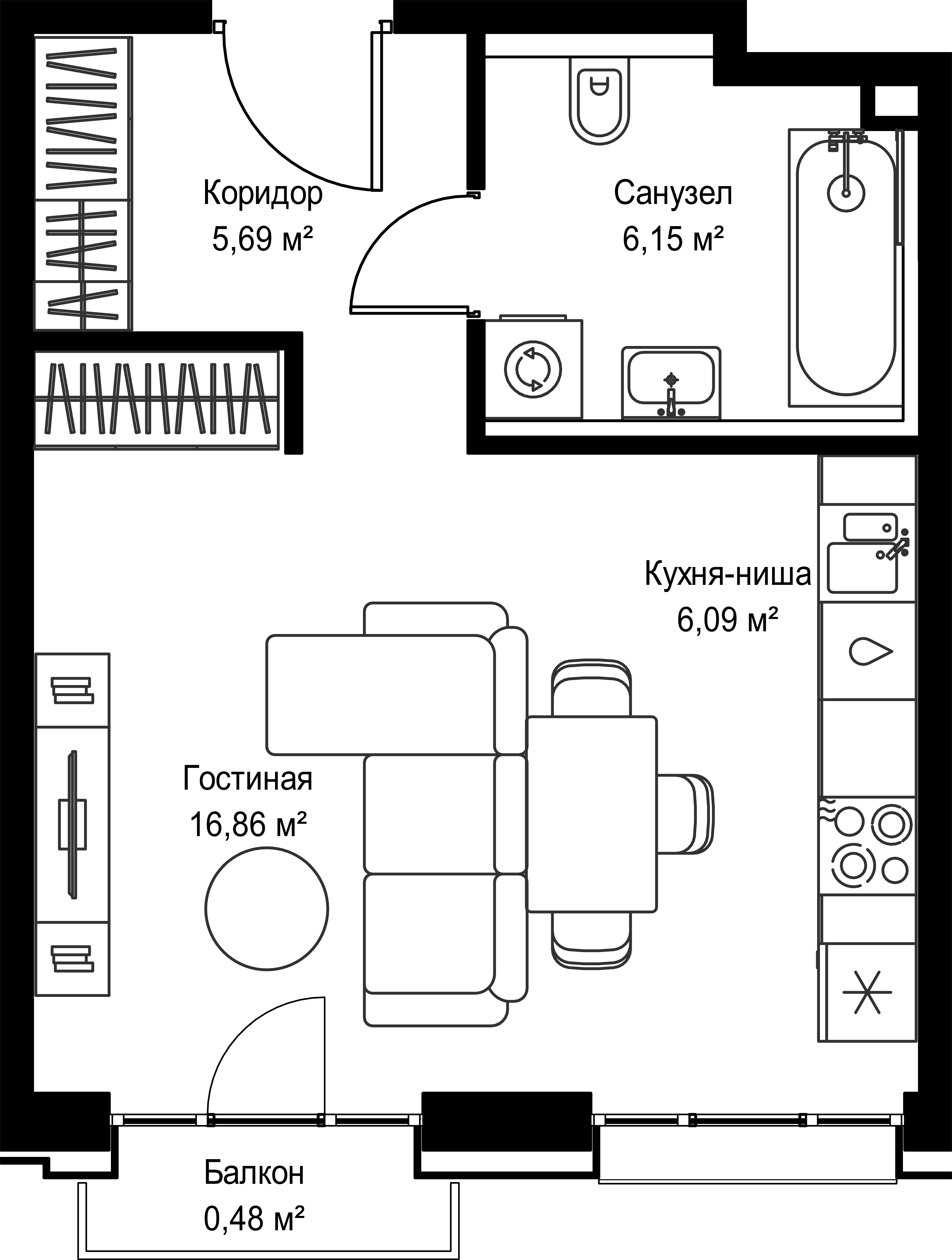 Купить 2к квартиру 44 м² в ЖК Гранель Коломенское