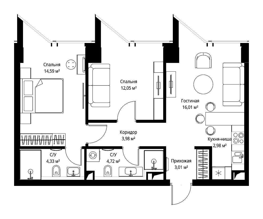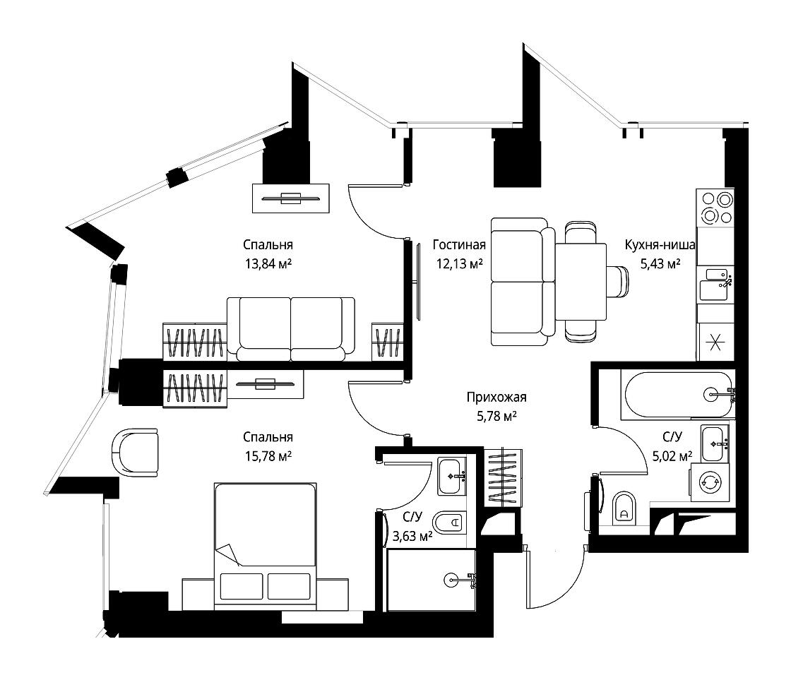 Купить 2к квартиру 77 м² в квартале Мневники от Гранель