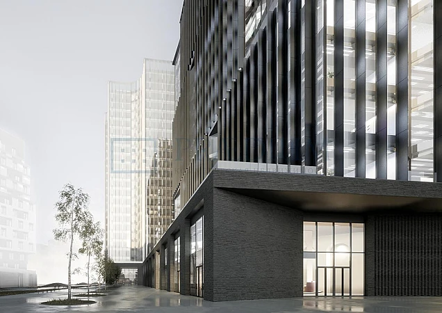 Уникальная архитектура проекта - две офисные башни в стиле black&white, объединенных единым стилобатом.