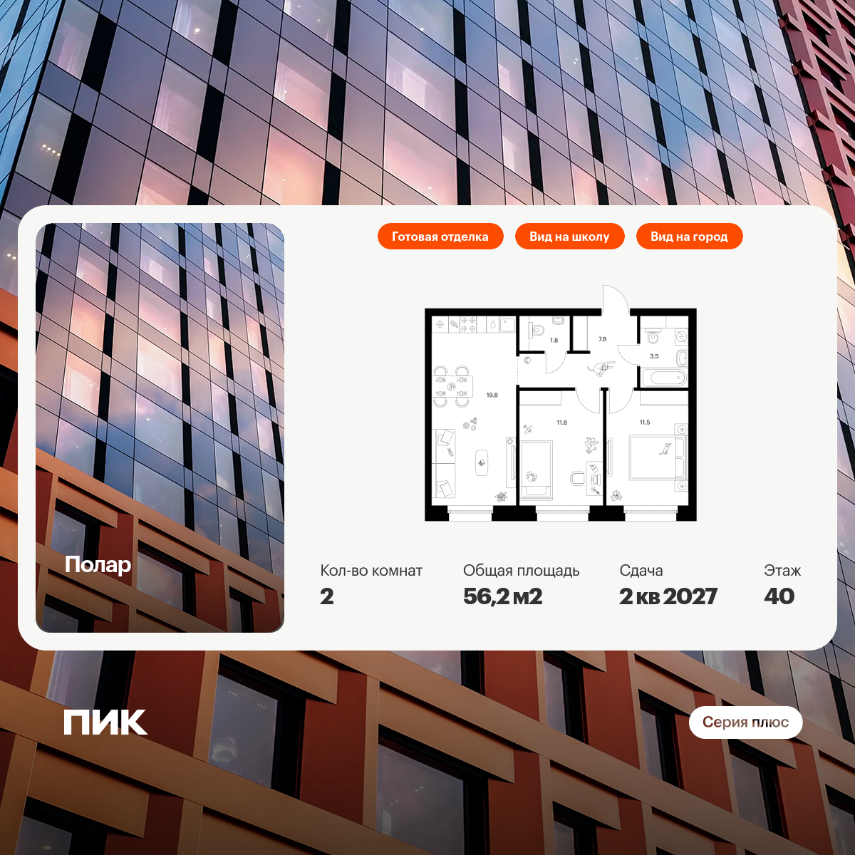Продается 1-комнатная квартира от застройщика: общая площадь 36.90 м, жилая 12.70 м, кухня 20.10 м, 9-й этаж, жилой квартал «Гордость», корпус 40 (секция 1) . Срок сдачи: 2 квартал 2029 года.