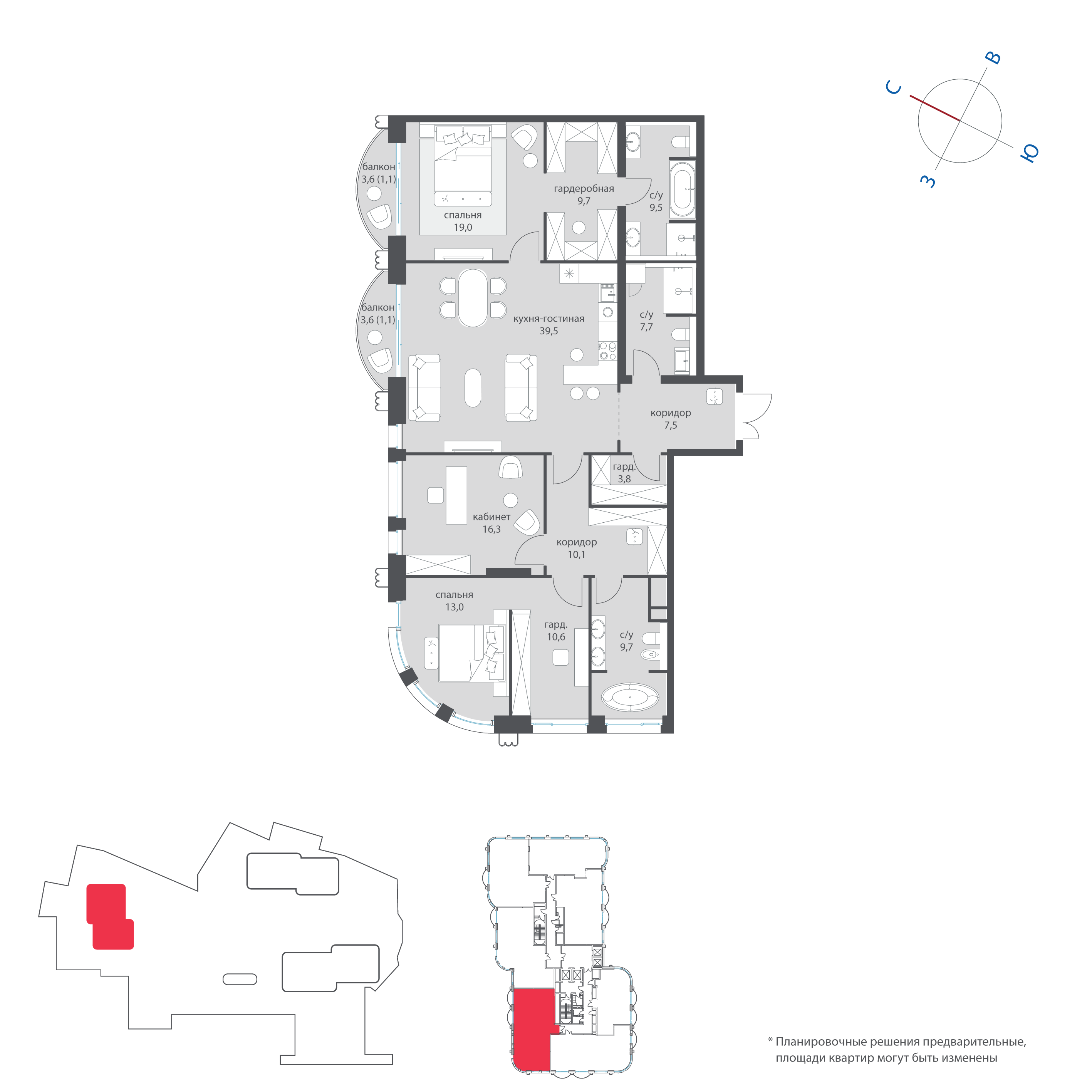Купить 4к квартиру 174 м² в ЖК Sky View