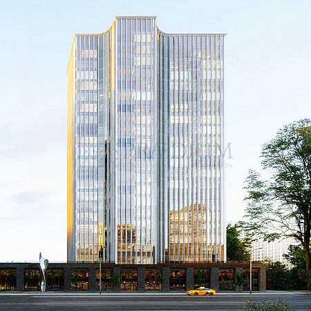 Уникальная архитектура проекта - две офисные башни в стиле black&white, объединенных единым стилобатом.