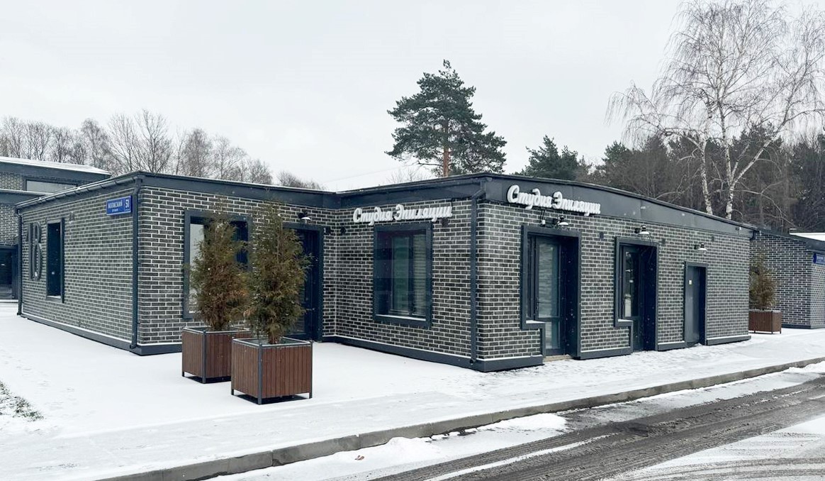 Отделка фасадов выполнена панелями с имитацией клинкерного кирпича. Дополнительно на территории организованы зоны отдыха, также дополнительно имеется возможность для организации летних веранд и кафе.