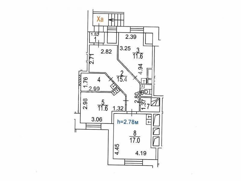 высота потолков - 2,8 м.;