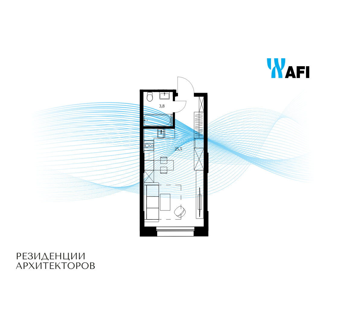 Продаются просторные апартаменты-студия общей площадью 29,3 м² на 10 этаже в сданном жилом квартале "Резиденции Архитекторов" вблизи с метро “Электрозаводская” и БКЛ “Электрозаводская”.
