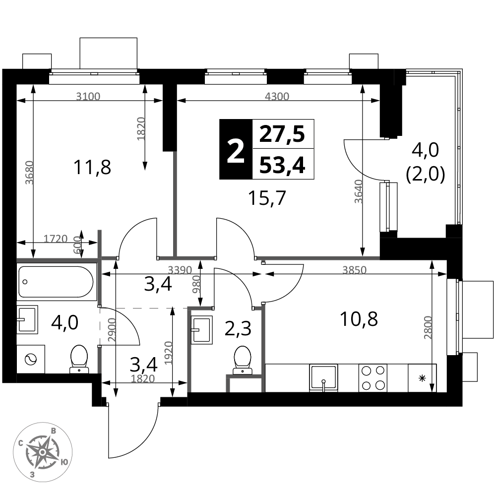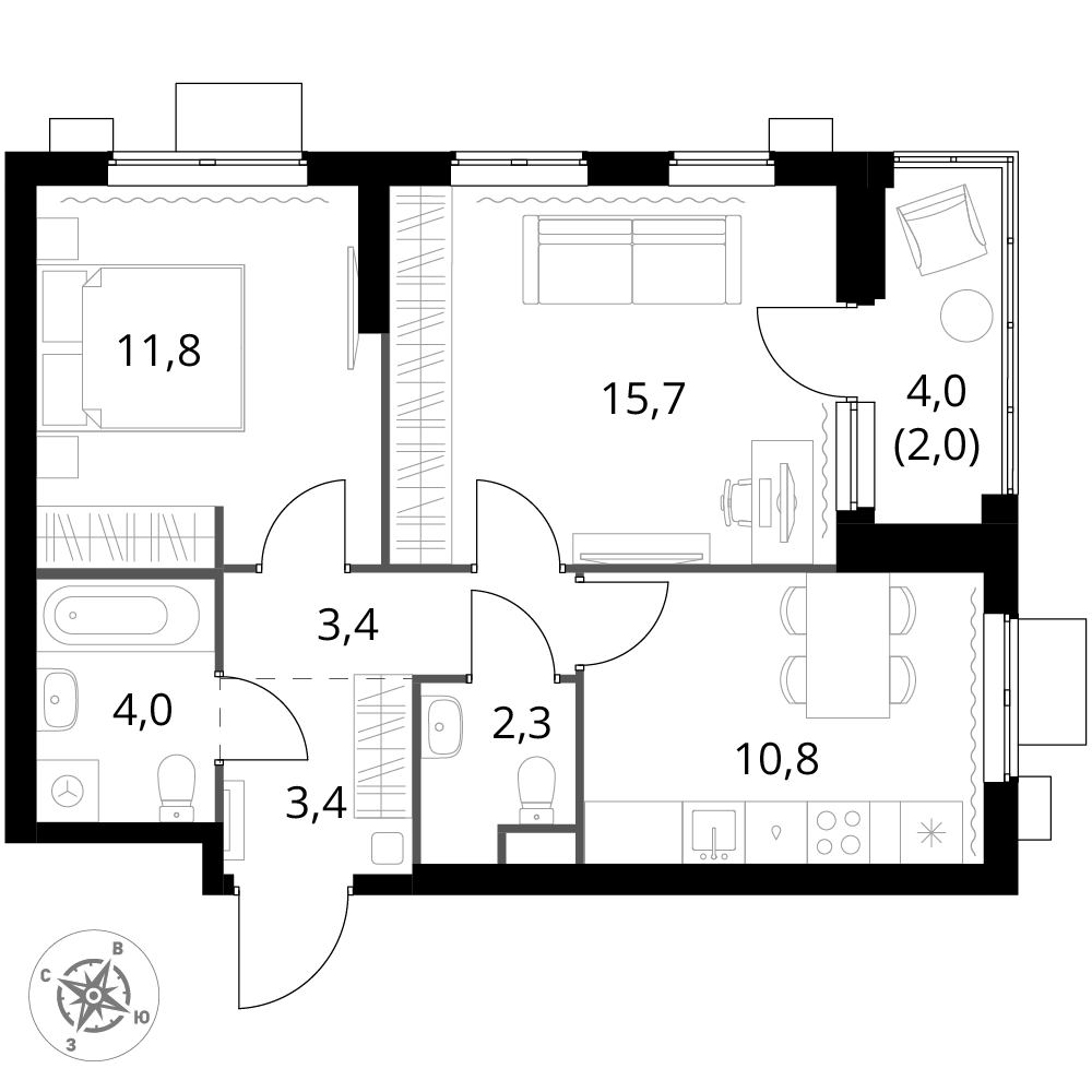 Планировка квартиры включает две комнаты, что позволяет использовать пространство для различных целей: например, организовать спальню и гостиную или обустроить детскую комнату и кабинет. Раздельный санузел — удобное решение для семей, где несколько человек могут пользоваться ванной комнатой одновременно.