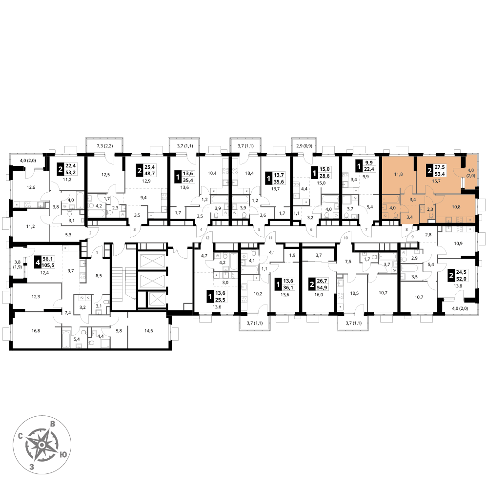 площадь комнат м²