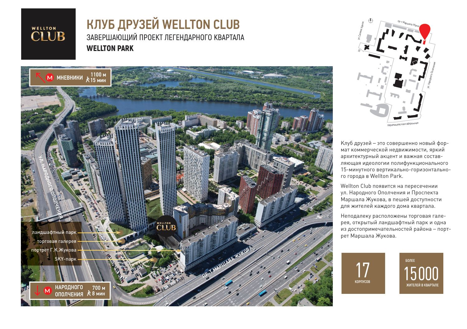 WELLTON CLUB, новый формат коммерческой недвижимости, который станет центром притяжения квартала. Москва, СЗАО, р-н Хорошево-Мневники, квартал Wellton Park. Плотный жилой массив района Хорошево-Мневники. 8 мин до станции метро "Народное ополчение". Расположение квартала Wellton Park безупречно с точки зрения транспортной доступности. Высокий автомобильный и пешеходный трафик. Более 70 000 тыс. жителей в 15-минутной пешей доступности