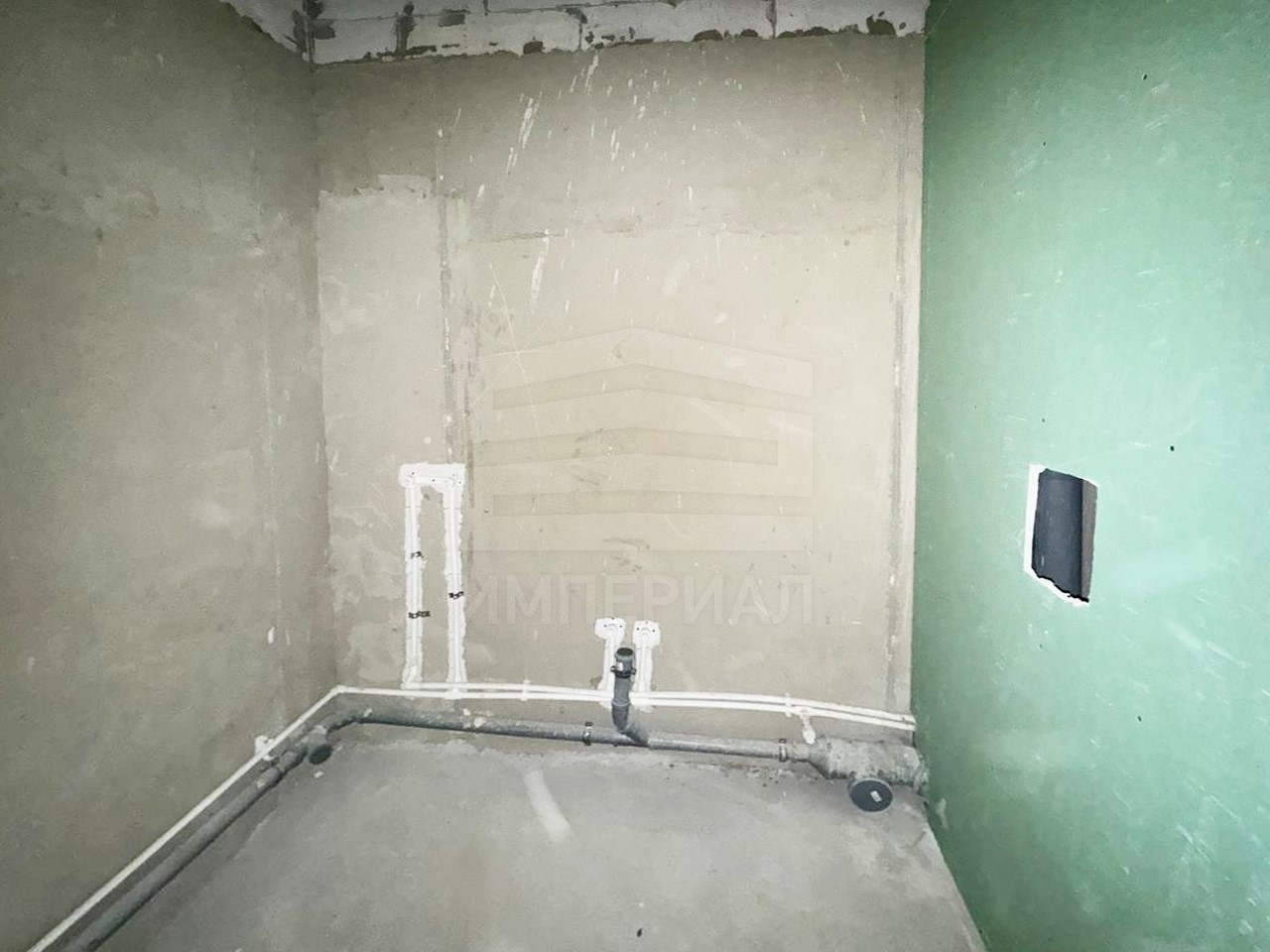Есть вытяжная вентиляция в санузле и на кухне, выходы хв/гв, место под раковину на кухне. Кроме того, в помещениях уже есть выключатели освещения, розетки для бытовой техники и роутера, а также сделаны закладные для оптоволокна для интернета.