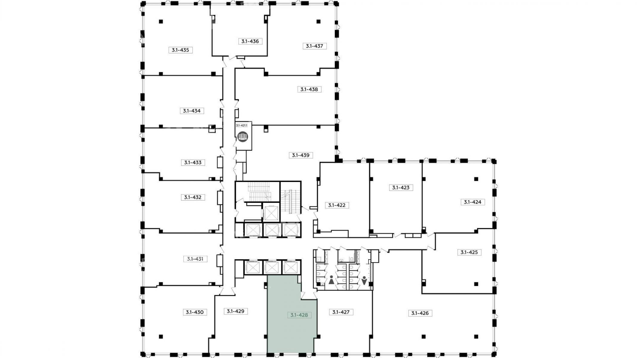 - На каждом этаже по два общественных санузла