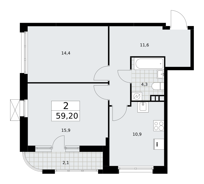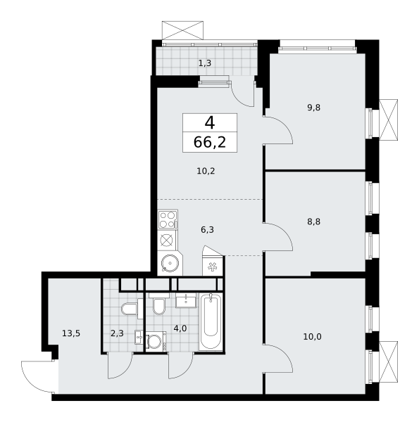 Продаются 3-к апартаменты площадью 64.3 кв.м. на 2-м этаже 28 этажного дома в "ЭМОУШН" от ГК ОСНОВА