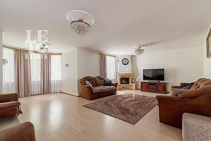Дополнительно на участке построен гараж (92м2) на два автомобиля, на втором этаже расположено два санузла, спальня, гостиная с выходом на открытую террасу.