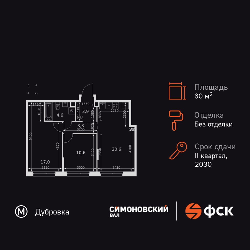 Купить 3к квартиру 60 м² в ЖК Симоновский вал
