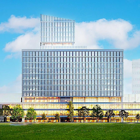 Уникальная архитектура проекта - три офисные башни, объединенные общим стилобатом.