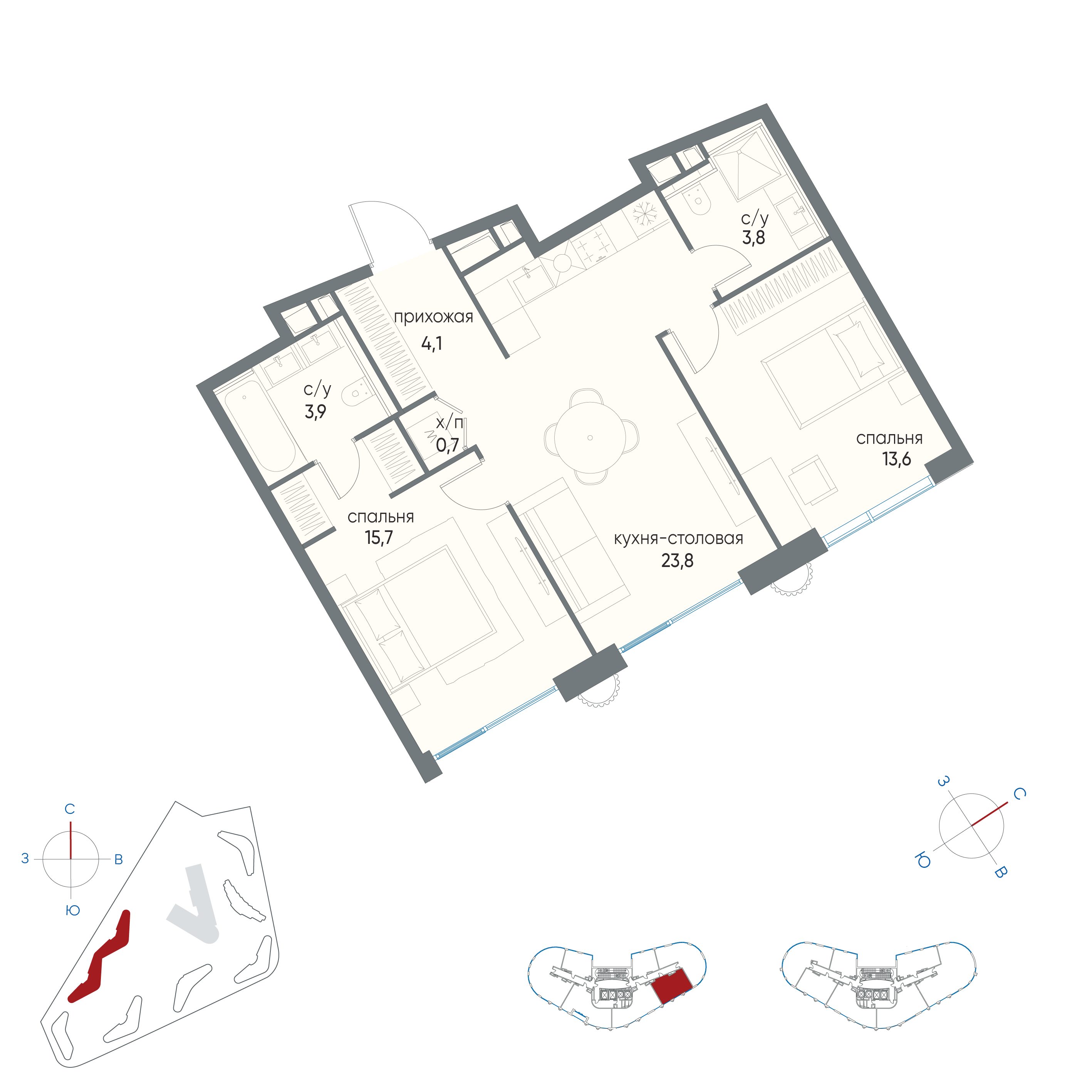Стоимость квартиры со скидкой 8% при 100% оплате 56839624 руб.