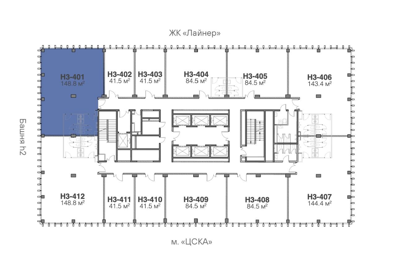 ПЛАТИМ АГЕНТАМ. Поможем с планом рассадки, ремонтом, мебелью. Премиальный офисный центр STONE Ходынка 1 включает три офисных башни. Проект расположен в районе Ходынского поля, который граничит с Ленинградским деловым коридором. Непосредственная близость от метро. Готовность - 2027 год. Описание помещения: Отдельный офисный блок на этаже. Расположен в башне Н3.