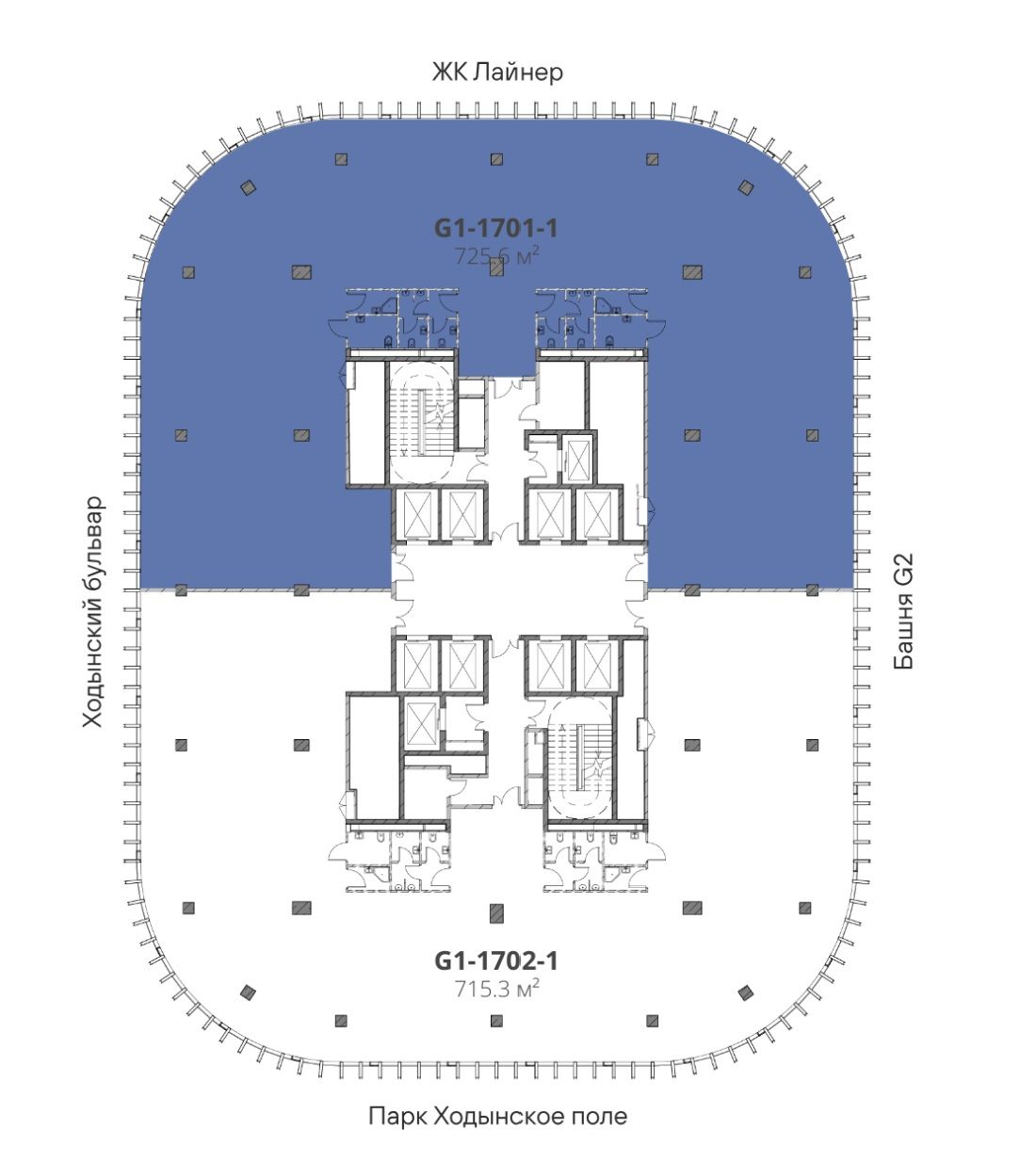 Половина 17 этажа - 725,6 м2.