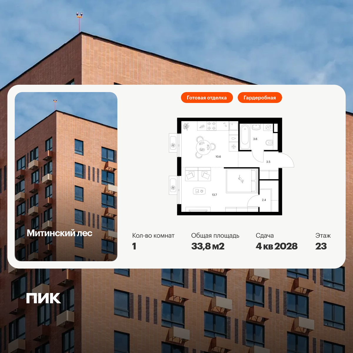 Площадь жилая: 31,4 м