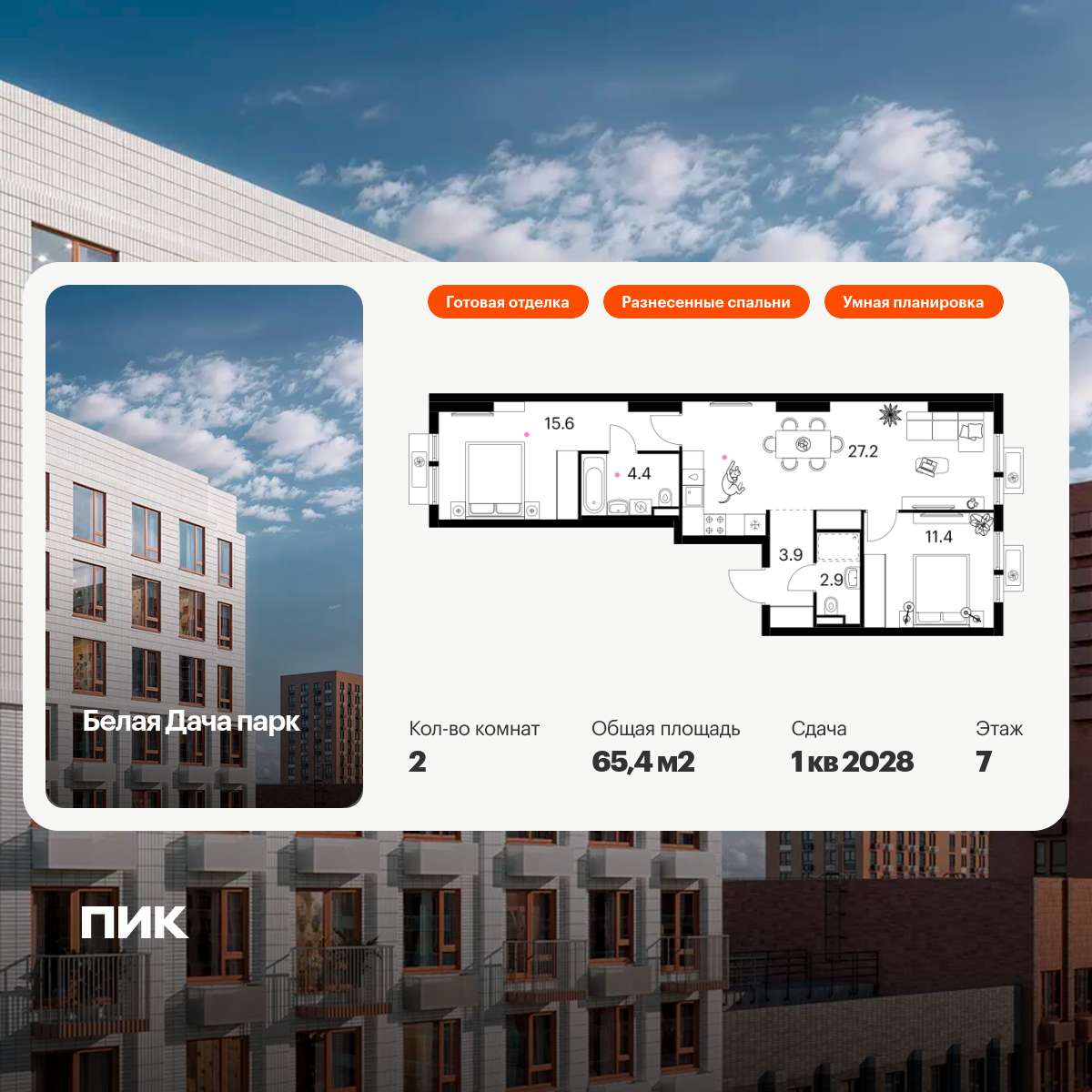 Количество комнат: 2