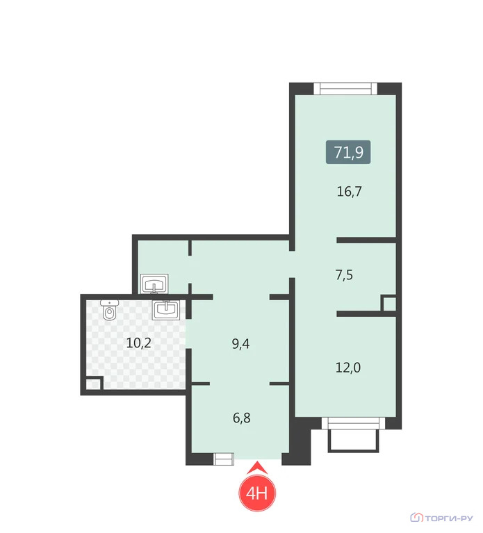 Нежилое помещение, 71,9 м | ЮВАО, р-н Некрасовка, ул. Маршала Ерёменко, д. 1, корп. 3, этаж 1, помещение 4Н | Метро: Некрасовка (пешком 18 мин., транспортом 18 мин., расстояние 1.16 км)