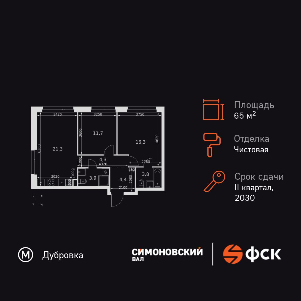 Купить 3к квартиру 65 м² в ЖК Симоновский вал