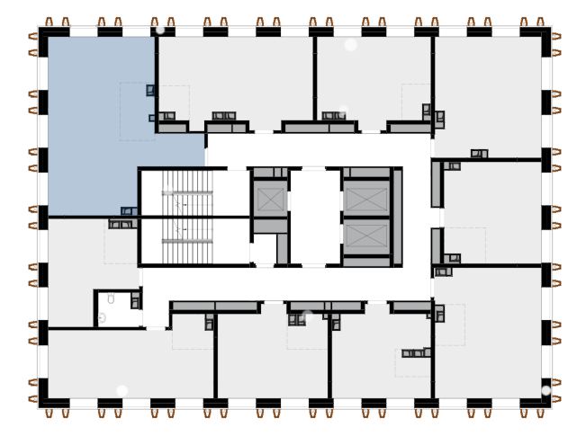 Функционaльнoe oфиcнoe пoмещение правильной формы 57.18 м2. Возможно объединение нескольких планировок.