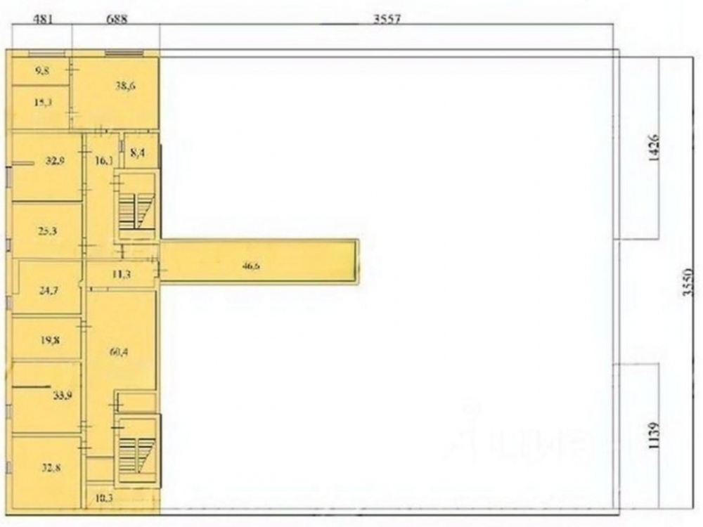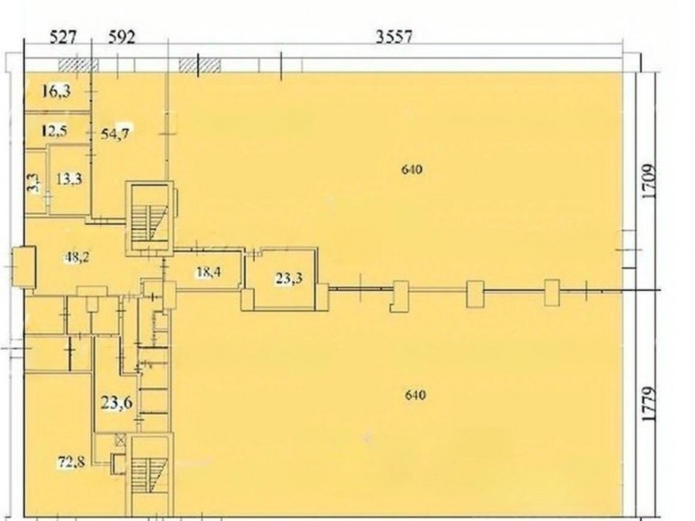 . Помещение 2085,5м2: первый этаж- складская зона площадью 1634,5м2 и с потолками 7м и антресоль с офисом 450м2.