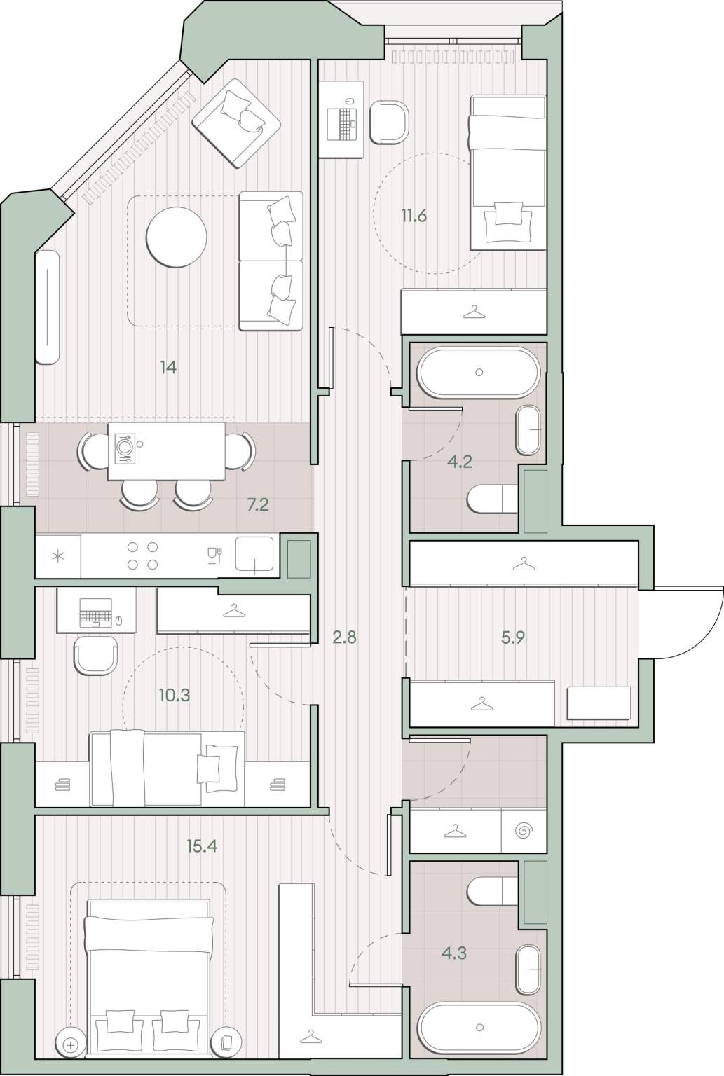 Купить 3к квартиру 88 м² в ЖК Дзен-кварталы