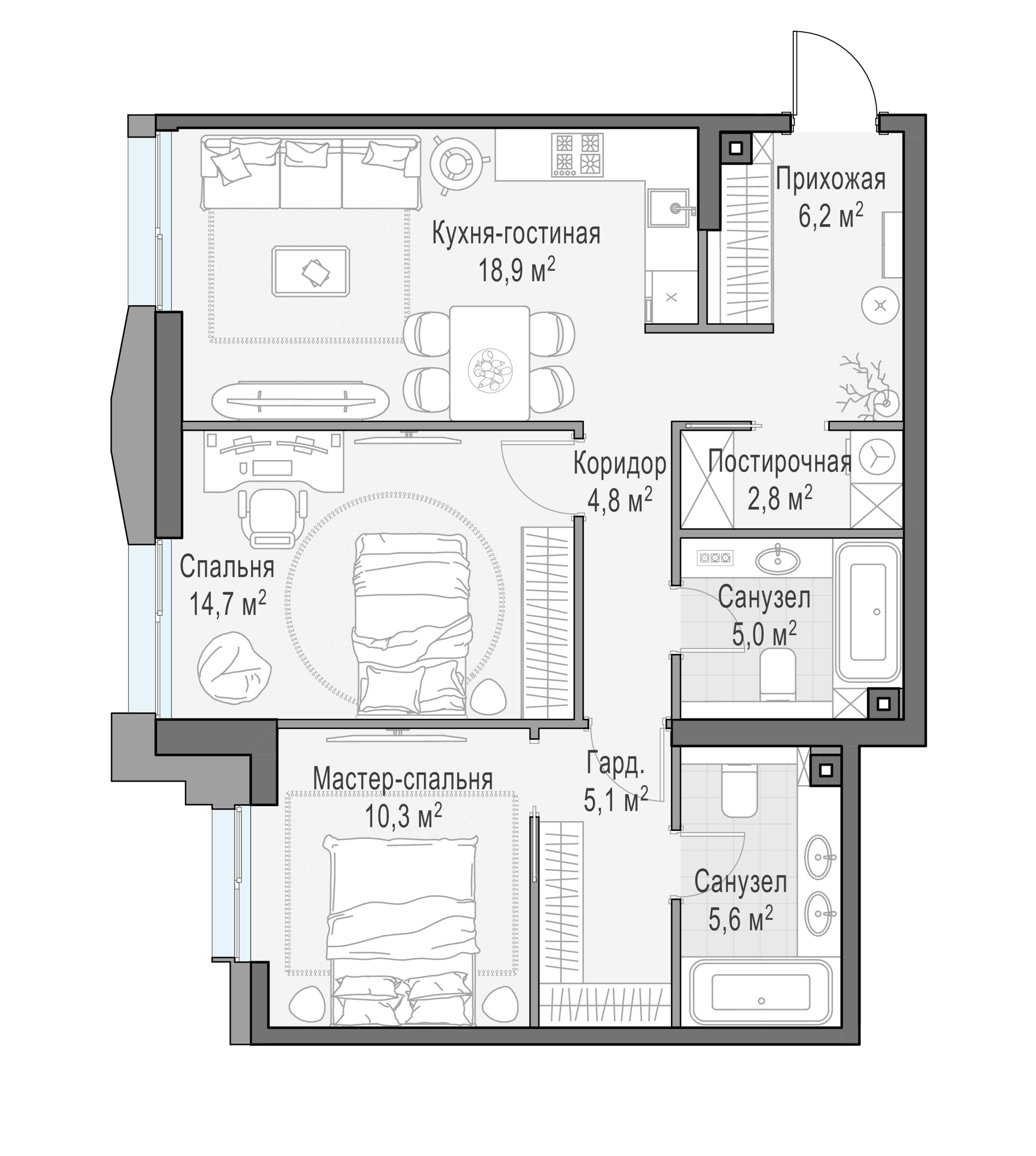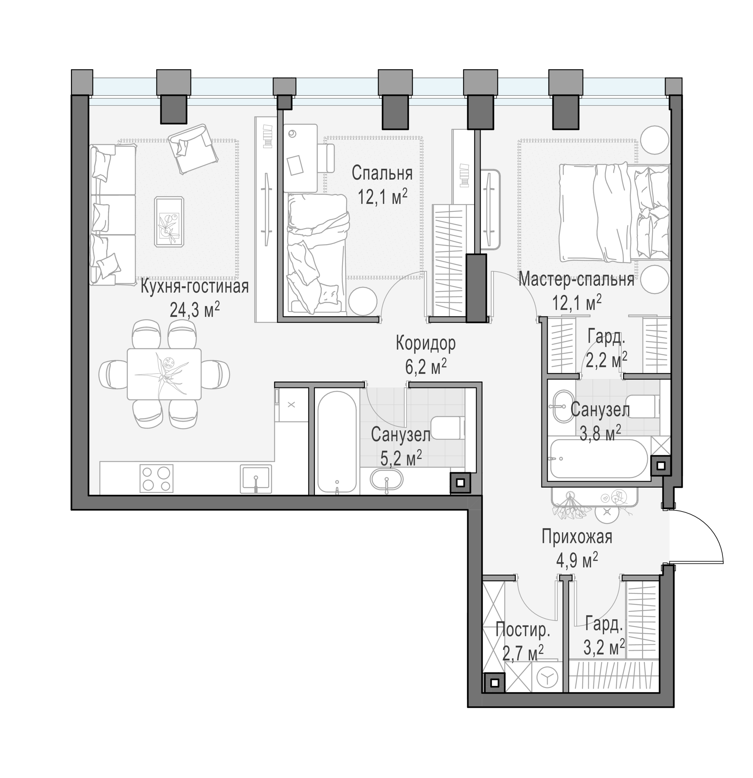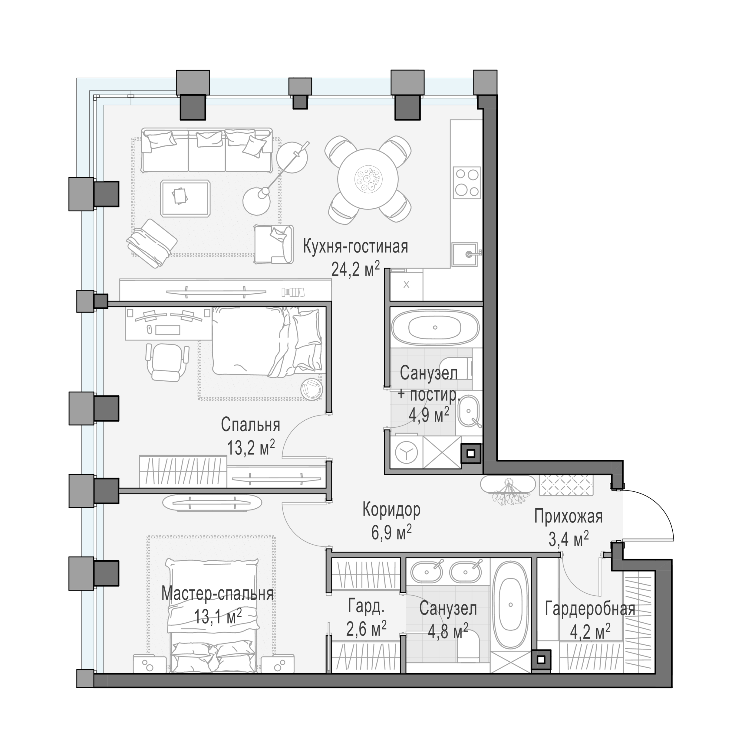 Продаётся 3-комнатная квартира, площадью 88,4 кв. м на 8-м этаже дома комфорт-класса в ЖК "Дзен-кварталы". Квартира с функциональной планировкой: большие окна, высота потолка 3,1 м, балкон, гардероб, мастер-спальня.