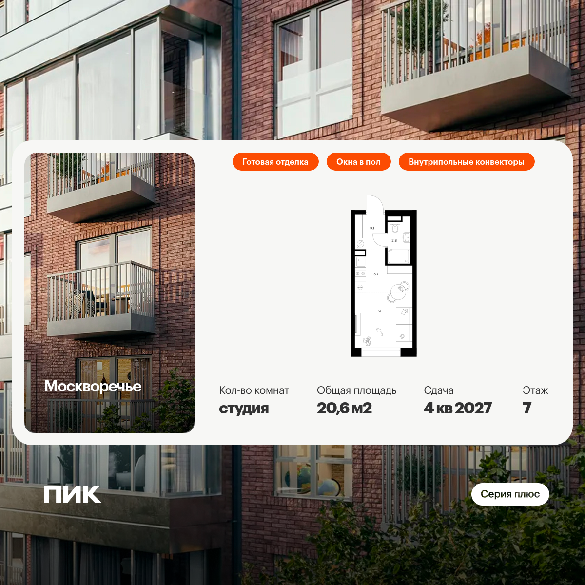 Продается студия площадью 31.62 кв.м. на 16-м этаже 18 этажного дома в ЭВОПАРК Измайлово от ГК ОСНОВА.