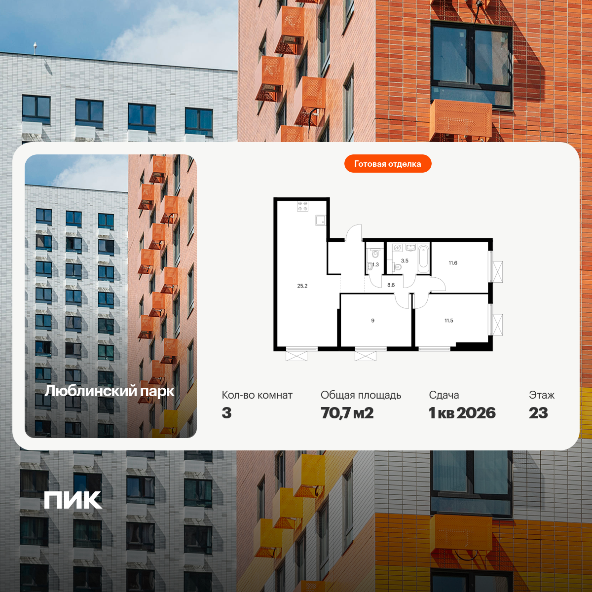 Купить 3к квартиру 77 м² в ЖК Прокшино