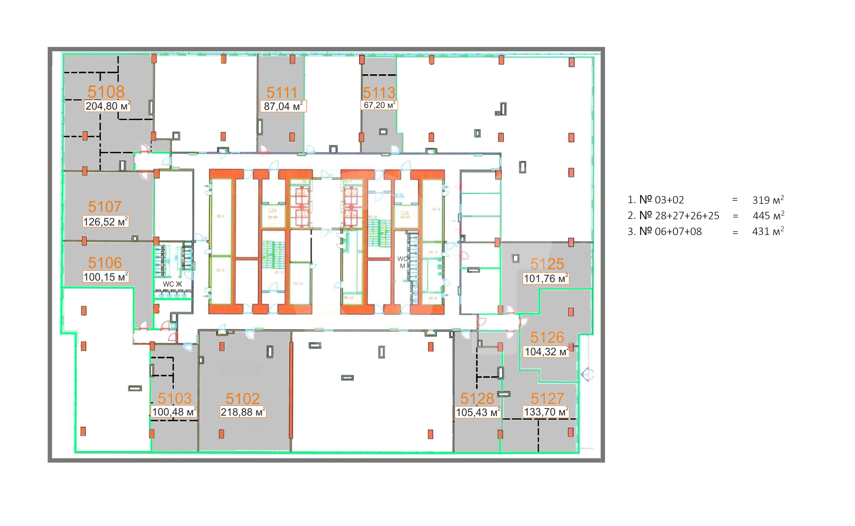 Этот лот состоит из нескольких помещений: 105 кв. м., 88 кв. м., 110 кв. м., 111 кв. м. и 102 кв. м.