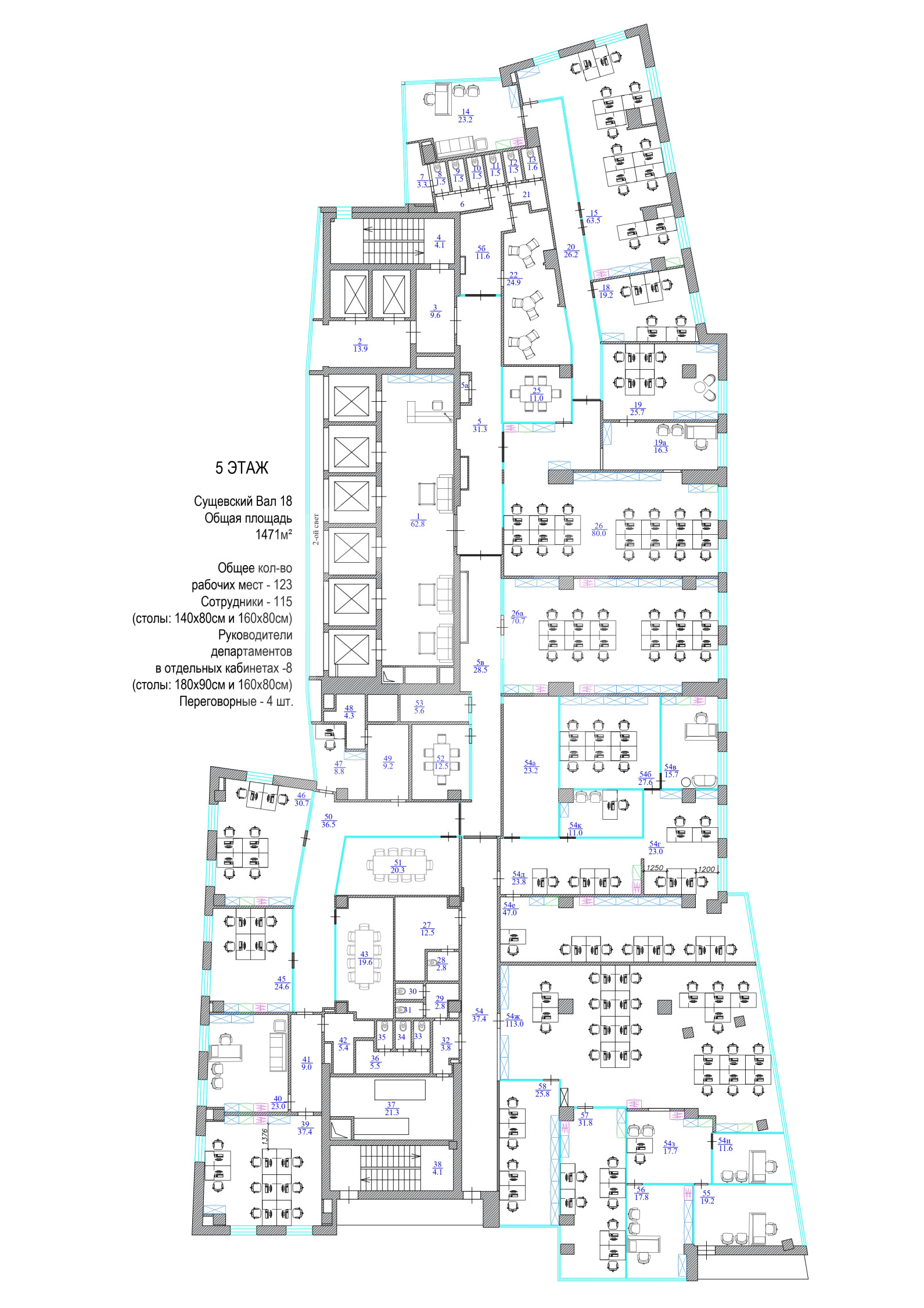 *Количество рабочих мест рассчитано автоматически: от 4,5 до 8 м² на человека.