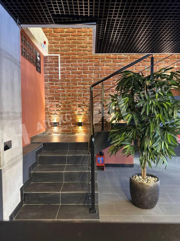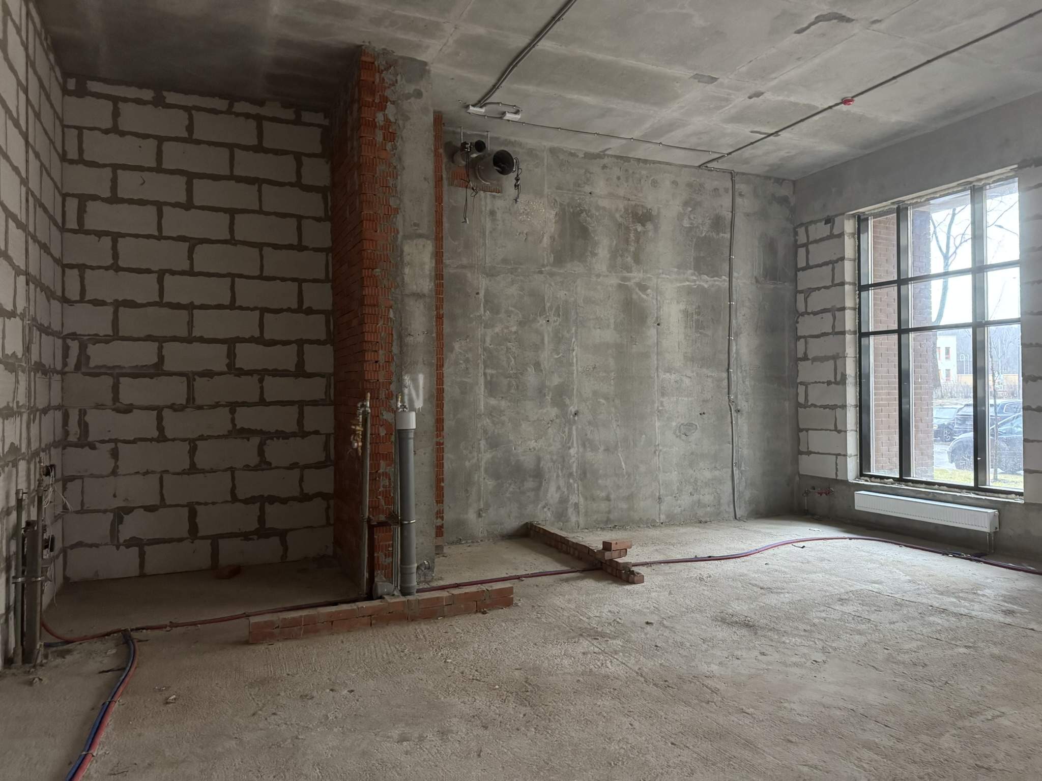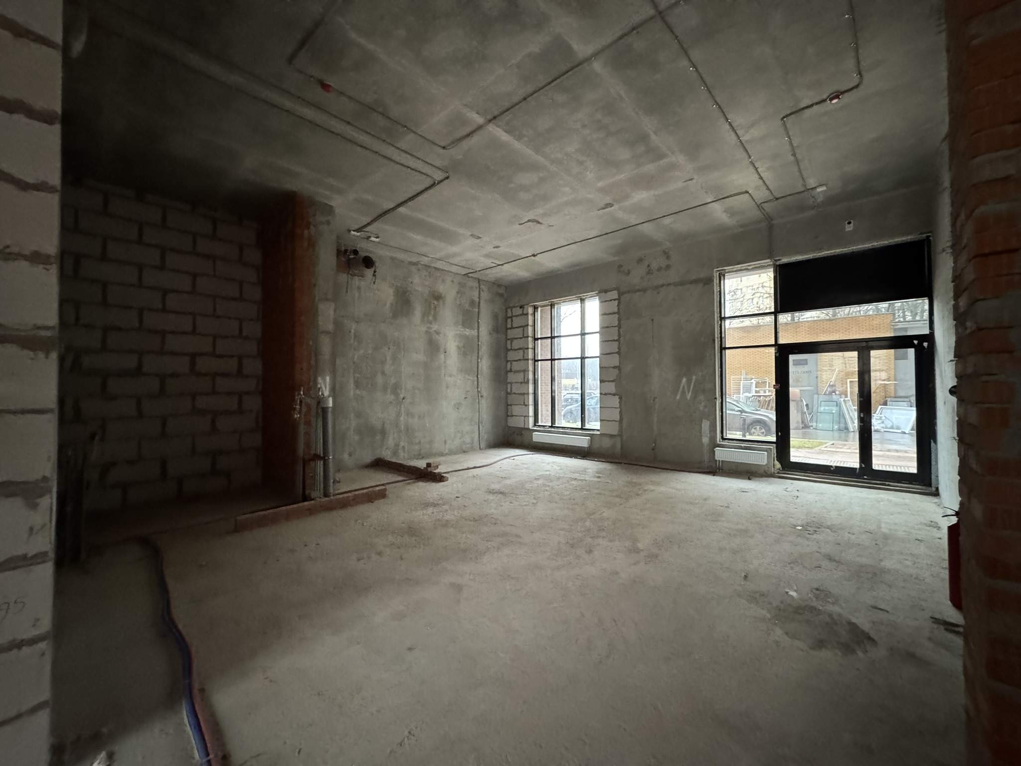 Витринные окна и отдельные входы на фасад. Центральные коммуникации: отопление, водоснабжение, канализация и вентиляция. Черновая отделка («бетон») — инженерные сети заведены, финальная мощность электропитания будет увеличена.
