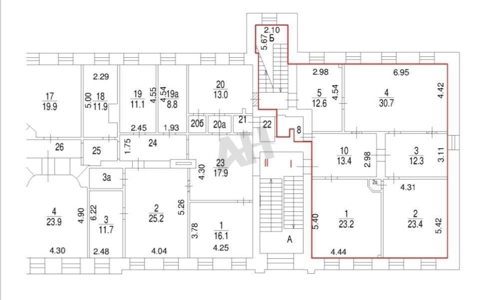 Помещение общей площадью 130 м² расположено на втором этаже с отдельным входом с улицы. Высота потолков составляет 3 метра, выполнена офисная отделка. Коммуникации включают центральное отопление и мощность электросети 15 кВт.