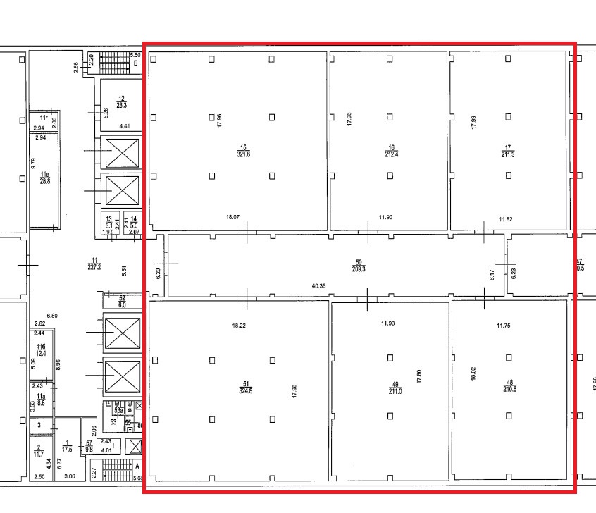 Площадь 200 кв.м. Первый этаж. Ворота на нулевом уровне.