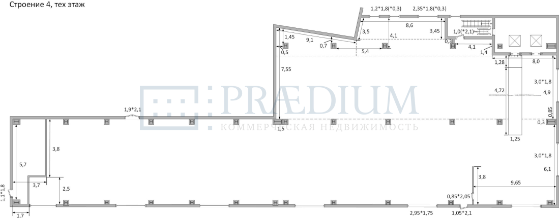 Полы - бетон с антипылью. Высота потолков - 5 м.