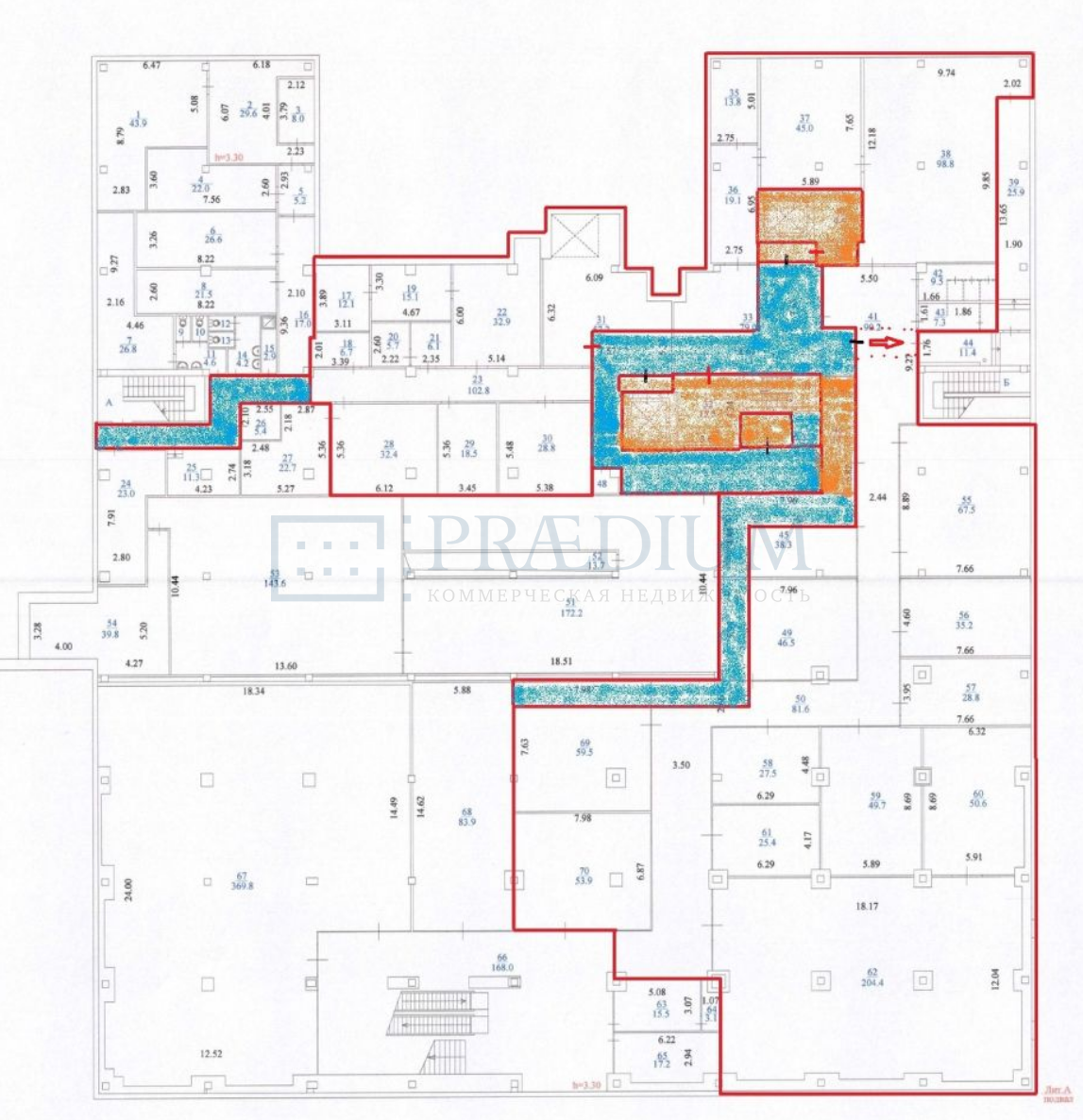 В помещении есть приточно-вытяжная вентиляция, кондиционирование, мокрые точки.