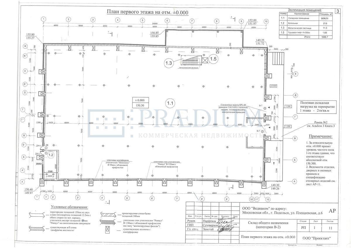 Площадь склада - 3488 м2 (два этажа).