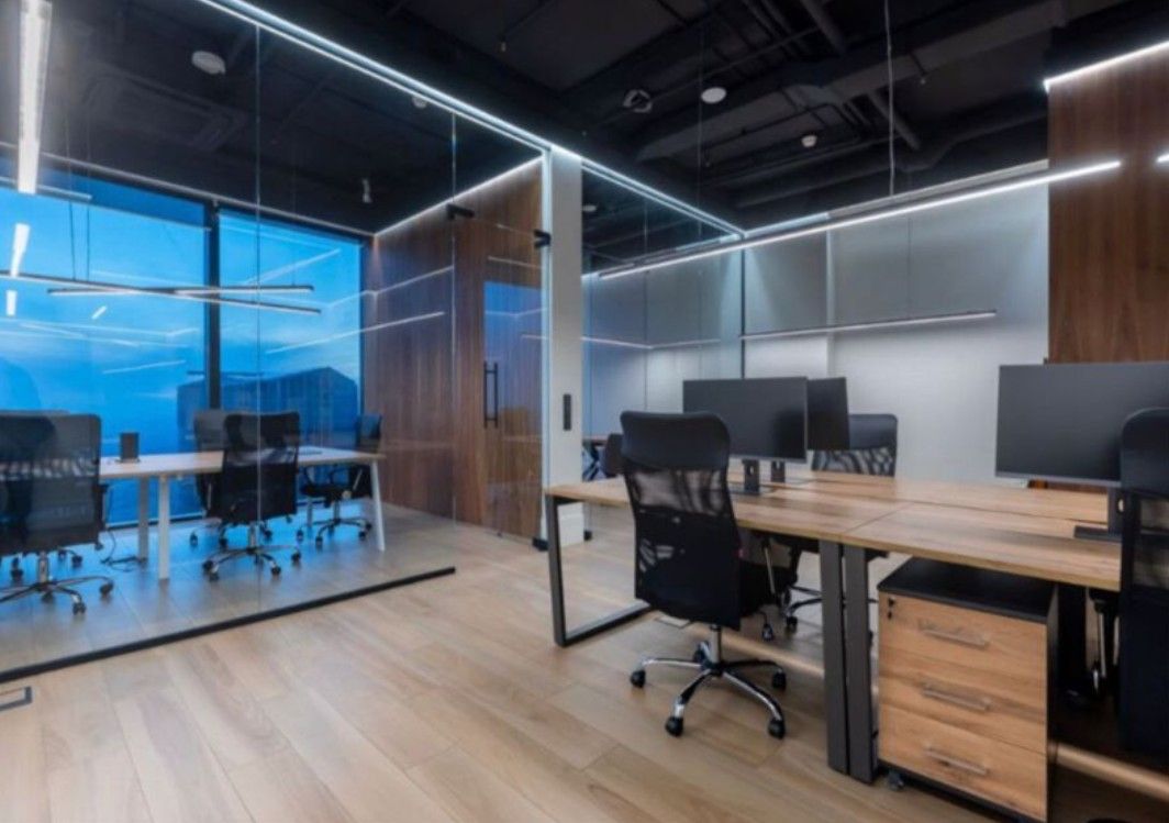 Состоит из 2 кабинетов, зоны open space, есть свой санузел кухня.