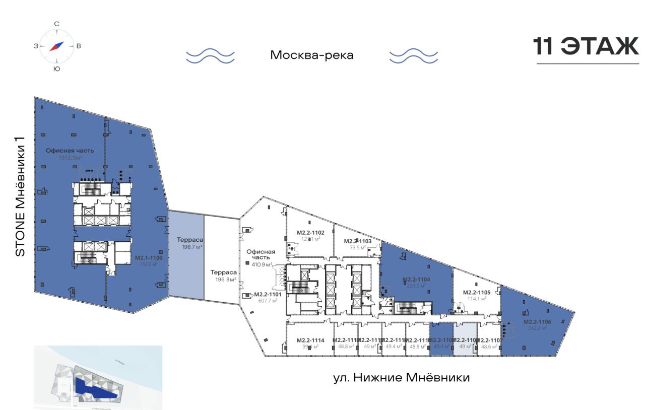 АГЕНТАМ ПЛАТИМ. Рентавик — участник ассоциации КОКОН STONE Мневники 1, 2 - это премиальные бизнес-центры, расположенные на первой линии Москвы реки. Они формируют новое деловое ядро западного направления в составе Большого Сити. Описание помещения: 12-этажная башня М-2. Общая площадь блока - 1509 м2.