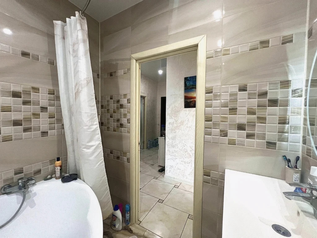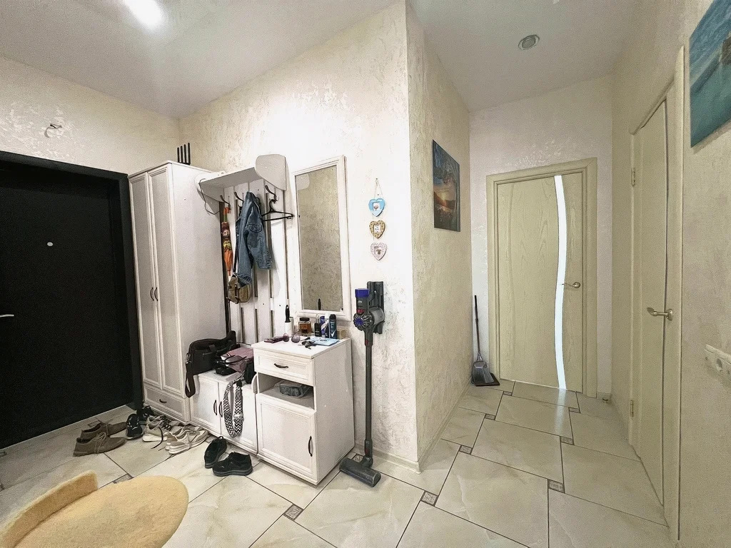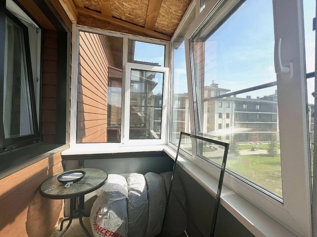В квартире установлены окна ПВХ, качественная входная дверь, залита стяжка пола, полы на кухне, балконе и коридоре - плитка, полы в комнатах - ламинат, везде натяжные потолки, раздельный санузел с шикарной ванной, большая кухня-столовая в 21 квадрат, два балкона с прекрасным видом на лес и территорию! Теплые полы, высокие потолки, просто заезжай и комфортно живи!