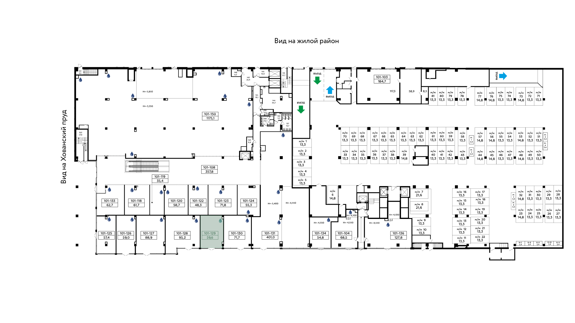 Парковка на 250 м/мест (наземная, охраняемая),