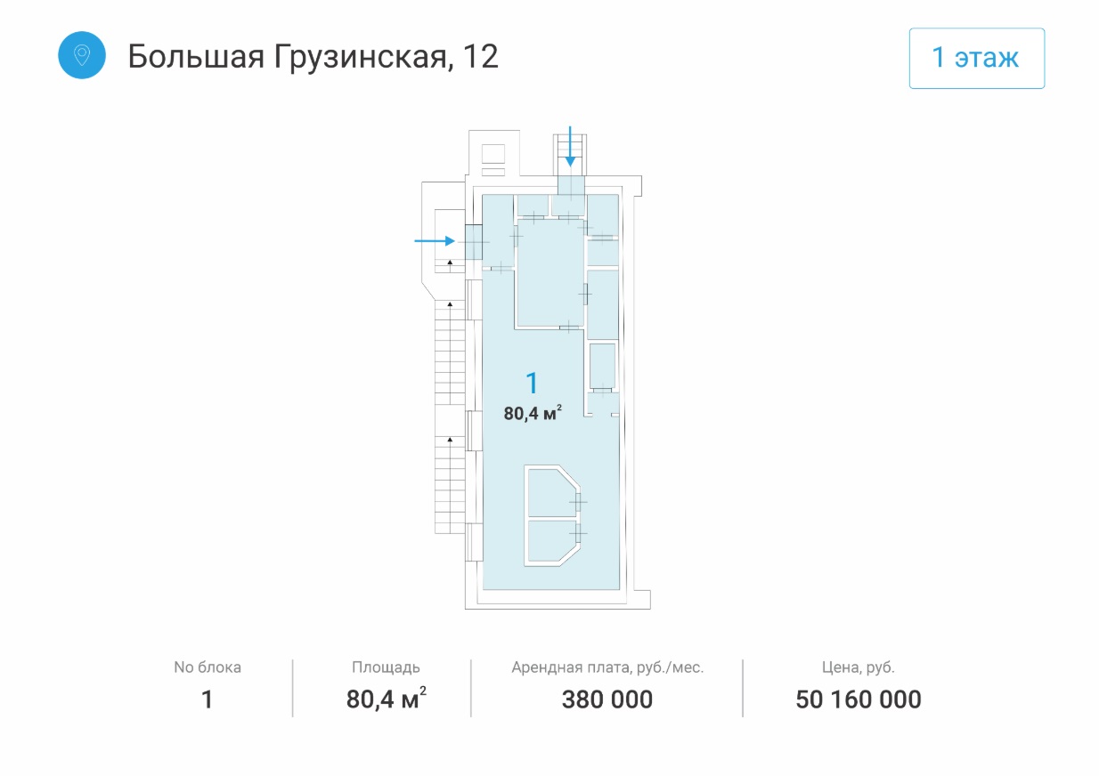Общая площадь 79 м2 в бизнес центре класса Б+ (16000 м2) 1500 человек,