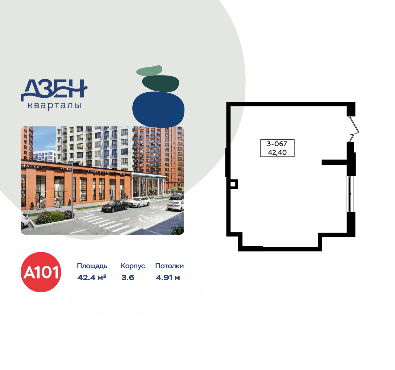Сдается помещение площадью 42.40. на 1-м этаже ЖК «Дзен-кварталы».