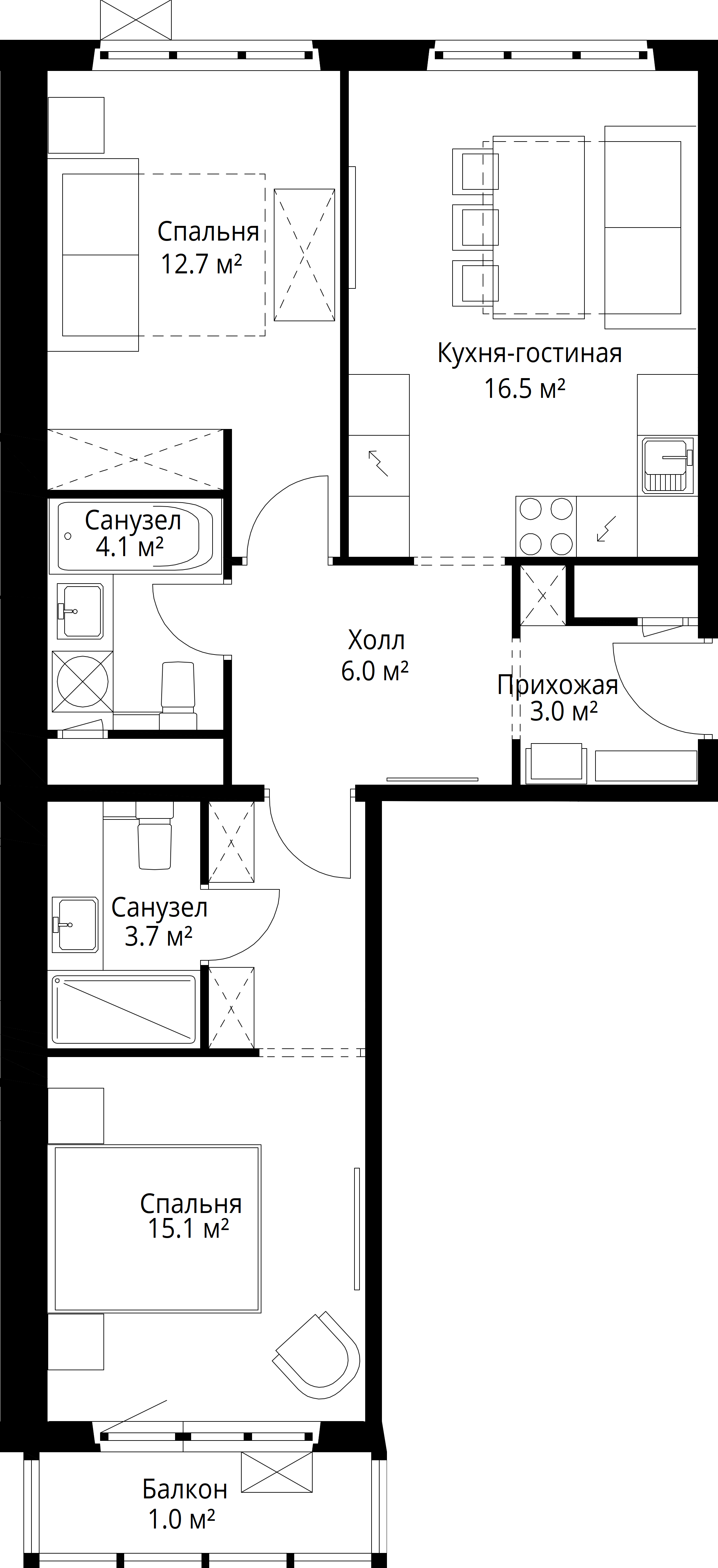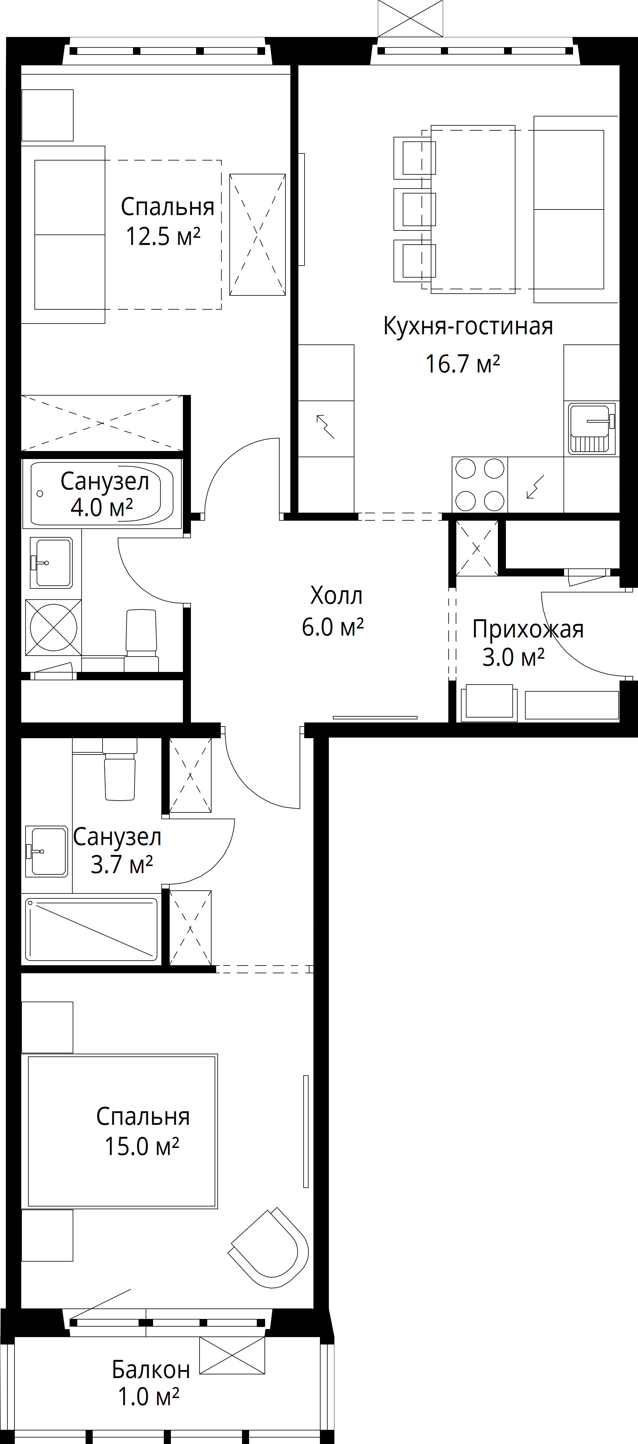 Купить 3к квартиру 74 м² в ЖК Дом на Сиреневой